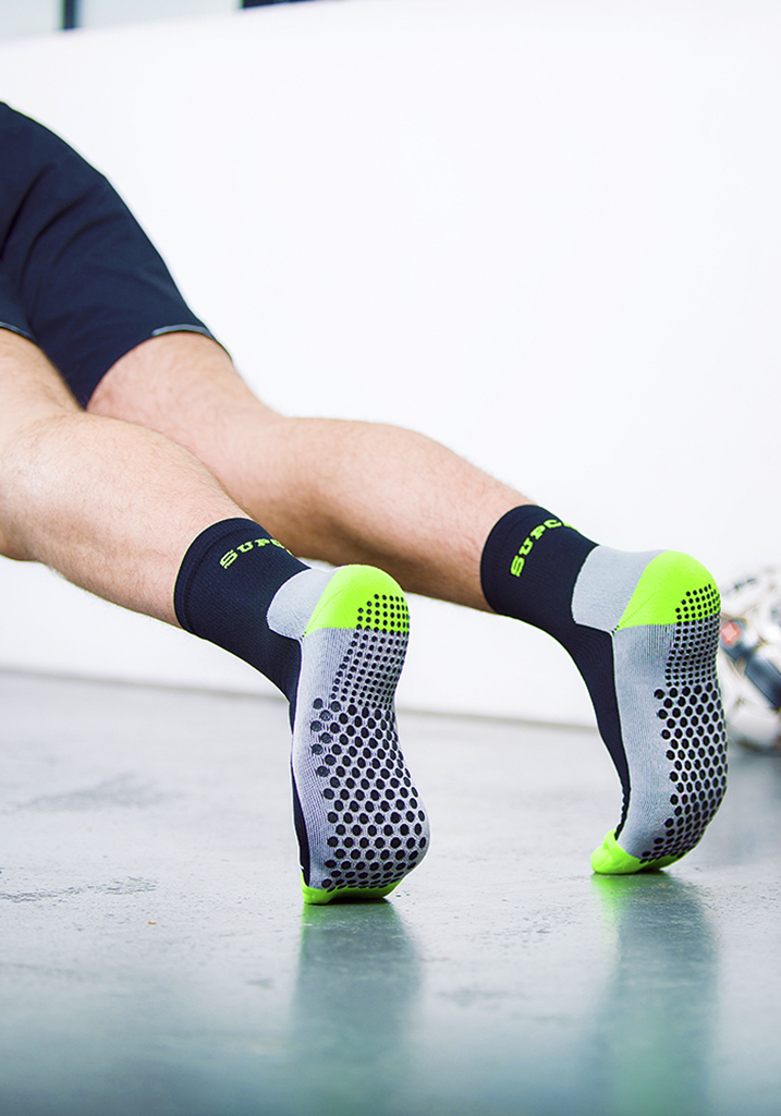 Tekniska, bekväma och snygga – dessa gröna stödstrumpor är skapade för dig med en aktiv livsstil. Med graderad kompression och halkskydd under foten får du både stöd och ett säkert grepp, oavsett om du tränar, står eller går mycket.
